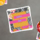 Forma quadrada cor de laranja clara sobre laranja rosa e cor de pêssego floral moderno com design marmorizado escuro. Os nomes são azuis neon em bares rosa-quente.