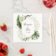 Estes guardanapos de papel para casamentos tropicais de ouro geométrico são perfeitos para uma recepção de casamento moderna. O design apresenta ouro de aquarela pintada à mão e palmeiras verdes e folhas de bananeiras com flores cor-de-rosa amontoadas em buquês, enfeitando um quadro geométrico. Faça destes guardanapos seus, incluindo os nomes da noiva, do noivo e da data do casamento. Estes guardanapos podem felicitar uma recepção de casamento, janta de ensaio, festa de noivado e muito mais!