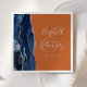 Estes elegantes guardanapos de casamento modernos apresentam um marinho azul de água design cortado com falso brilho prateado. Personalize facilmente o texto da cinza prateada em um fundo laranja queimado, com os nomes da noiva e do noivo em caligrafia manual sobre um grande e grande painel.