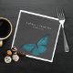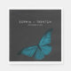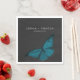 Este design de guardanapo de casamento apresenta um tema escuro e meloso que é simples, mas atordoante. Um fundo negro de carvão negro é a canvas perfeita para uma mariposa azul-azul-lacrimejante solteiro, suas asas se espalham para o voo. Único e elegante, este design pode ser usado em qualquer estação. Criado pela imprensa simplesmente de farmácia.