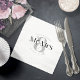 Uma fonte ousada e decorativa imediatamente pega seu olho e define o tom para a maioria das peças desta suíte de casamento moderna e minimalista. O guardanapo de papel de casamento mostrado aqui apresenta um texto único do 'Sr. & Sra.' e uma modelo para adicionar facilmente seus nomes e data de casamento. Um espantoso, sotaque acentuado no coração e adiciona um sotaque divertido adicional. Procure ID887 para ver todos os produtos neste conjunto de casamento.