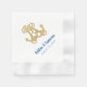 Dois guardanapos de ouro com texto azul marinho. Design angled para que guardanapos possam ser colocados em forma de diamante. O design náutico tem duas linhas de texto em negrito para nomes e fontes impressas para a data, ou mensagem curta para convidados obrigados.