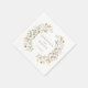 Revele elegância com os nossos guardanapos de papel de caserno de jardim botânico, endurados, enfeitados com uma cor aquática cativante flores silvestres do outono e folhas verdes entrelaçadas em coroa elegante. Personalizados com os nomes da noiva e do noivo, esses guardanapos clássicos do tema floral adicionam um encanto especial à sua delicada configuração de mesa de verão/casamento outono.
