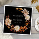 Casamento outono Negro Napkins. Estes elegantes guardanapos de papel de casamento apresentam cor d'água queimada manualmente, laranja queimada e folhas de terracota, creme e dálias beges, e belos rosas de cor ferrugem sobre fundo negro com o nome próprio da noiva e noiva e a data do casamento. Localize itens correspondentes na Coleção Romance de outono Preto.