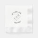 Os guardanapos de papel coquetel personalizados, com casal/ noiva e as iniciais/monograma do noivo e data de casamento cercados por uma elegante coroa de louros desenhada à mão.