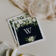 Estes guardanapos de papel de casamento royal e floral verde são perfeitos para um evento rústico. O design apresenta elegantes pedras brancas de aquarela com folhagem verde em fundo azul escuro. Faça com que esses guardanapos sejam seus, incluindo a última inicial da noiva e do noivo. Estes guardanapos podem felicitar uma recepção de casamento, janta de ensaio, festa de noivado e muito mais!