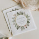 Estes guardanapos botânicos românticos apresentam uma floral de marfim de aquarela e design verde organizados em torno de um círculo de ouro sobre fundo de marfim. Adicione os nomes dos casais na fonte da cinza de carvão, se for, com a data de casamento abaixo em sans serif.