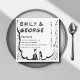 Este elegante guardanapo ao estilo quadrinhos preto-e-branco é perfeito para um casamento moderno. O simples design apresenta uma caligrafia preta elegante e uma ilustração de noiva e noiva sobre um fundo temático de quadrinhos.