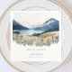 Crie seu convite personalizado para casamento, com design minimalista e elegante ilustração da paisagem da montanha.