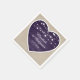 Guardanapos de papel roxo, russos, com coração de madeira e luzes de cordas contra fundo de burlap.