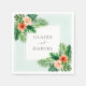 Elevem seu decor de casamento tropical com este design de guardanapo, com lindas folhas de aquarela e flores. O texto é totalmente personalizável, perfeito para casamentos de praia, eventos de destino ou celebrações de temas insulares
