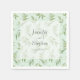 Estes guardanapos de casamento apresentam um padrão botânico de folhas verdes salgadas de cor d'água com um fundo azul-esverdeado pálido. Os nomes da noiva e do noivo e a data do casamento são facilmente trocados para personalizar os guardanapos para o seu dia especial.