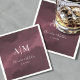 Este guardanapo de casamento minimalista apresenta um fundo de cor-de-água vermelho de burgundy ou merlot com fontes brancas, mostrando as iniciais, nomes e data de casamento da noiva e do noivo. O design simples e elegante integra-se perfeitamente a qualquer tema de casamento, inclusive tradicional, clássico, gótico ou moderno. Funciona especialmente bem no outono ou nos casamentos outono, mas também pode ser adaptado para qualquer outra estação ou sistema de cor. Perfeito para recepções de casamento e horas de coquetel, esse guardanapo adiciona um toque sofisticado, permanecendo versátil por vários temas sazonais. O fundo de burgundy chic ou merlot watercolor e as cores brancas da fonte podem ser personalizados para ajustado de suas preferências específicas. O texto é apresentado em uma mistura de tipografia de escrita de caligrafia e serifa clássica. Sua elegância subestimada faz dela uma escolha versátil para seu dia especial. Simples Na moda da Elegante Burgundy Watercolor Monograma Casamento Napkin.