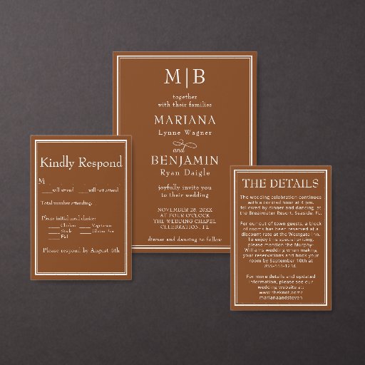 Guardanapos modernos para sua recepção de casamento, janto de ensaio e chá de panela no tema marrom minimalista da fronteira.