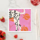 Um impressão de arte ousado e moderno, com as patas traseiras e cauda de um Dalmático contra um fundo rosa vibrante. Pêssegos de laranja estilizados e linhas curvas adicionam um toque abstrato lúdico. Perfeito para amantes de cães e para aqueles que apreciam designs gráficos únicos.