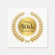 Este elegante guardanapo de coquetel apresenta um quadro de monograma de ouro cercado com uma coroa de louros e o texto "Feliz 50º Aniversário". Você pode personalizar este item com seu próprio texto selecionando o botão "Personalizar" e preenchendo seu texto no modelo de design. Você pode alterar fontes, tamanhos de fonte e cores de fonte, se preferir. Você também pode mudar a cor branca do fundo para outra cor. Chapas de festas e sacos de presentes também estão disponíveis nesta design.