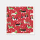 Cães de Caça-Besta com casacos castanhos, pretos, brancos e limões vestidos de roupas festivas de férias, chapéus de Santa e blárgulas com Enfeites de natal espalhados.