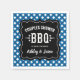 Os guardanapos de chás de casamento de casais de CHURRASCOS casuais / churrasco apresentam um quadro decorativo preto, fontes ocidentais e modernas, sotaques de estrelas e um design marinho, azul e branco de borda de xadrez de mesa de gingham.