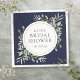 Com delicadas folhas de verde água sobre um fundo azul-marinho, esta guardanapo de chá de noiva botânico elegante pode ser personalizado com as informações do seu chá de noiva. Criado por Thisisnotme©