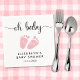 Guardanapos de papel bonitos para o chá de sua menina com "oh baby" em um roteiro bonito com pestanas e uma coloração d'água cor-de-rosa pastel de pés de bebês. Por baixo, você pode personalizar facilmente com seu nome e data de chá.
