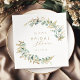 Guardanapos rústicos para chá de noiva apresentam folhas de folha de ouro falso, coroa de greenery botânico de eucalipto em aquarela e fonte e letra modernos e elegantes, românticos, ótimos para casamento rústico moderno, casamento em jardim botânico e casamento country boho.
