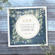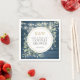 Com belas luzes de corda e delicadas folhas de folhagens em aquarela em um fundo de madeira azul rústica, esses guardanapos elegantes para chá de casal botânico podem ser personalizados com as iniciais do seu monograma e detalhes especiais do chá de casal. Criado por Thisisnotme