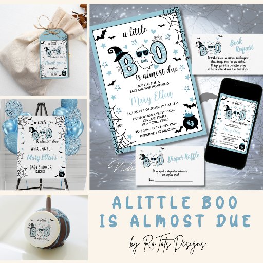 "A Little Boo is Quase due" foi projetado para trazer um sorriso aos rostos de seus hóspedes e deixá-los entusiasmados com o chá de fraldas. Perfeito para um chá de fraldas de Halloween/outono este charmoso design com uma mistura de elementos divertidos e sazonais dá o tom perfeito para uma celebração memorável.