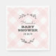 Design de chá de fraldas, russa e moderna, apresentando texto de cinza em fundo de xadrez de gingham de rosa claro. Perfeito para um verão ou para um chá de fraldas temático do país.
