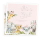 Guardanapos de safari chá de fraldas de menina com animais de menina doce com flores rosas e pinceladas em um bonito fundo rosa-claro. Esses guardanapos de chá de fraldas safari são facilmente personalizados com seu texto.