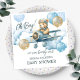 Gráficos de aquarela de ursinho adorável em tons de bronzeado, marrom e azul. Tema do chá de fraldas do bebê excelente. Nuvens de aquarelas, balões, avião e ursinho de pelúcia fofo. Chá de fraldas personalizado/personalizado. Procure itens correspondentes na minha categoria de chá de fraldas no compro.