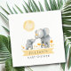 Este design encantador apresenta uma doce mãe e um elefante bebê com flores amarelas, perfeito para celebrar a chegada de um novo bebê. O adorável motivo elefante acrescenta um fazer de toque caprichoso a uma escolha encantadora para uma celebração de chá de fraldas. A paleta de cor suave e os sotaques florais criam uma sensação quente e convidativa, definindo o tom de um evento especial para acolher o pequeno.