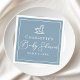 Este guardanapo de papel de chá de fraldas azul empoeirado apresenta um belo cavalo de balanço sobre sua elegante tipografia branca minimalista. Simples e doce decoração de chá azul para uma mãe esperando um bebê.