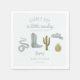 O tema do cowboy russo guardanapo de papel chá de fraldas com ilustração de uma bota de cowboy, chapéu, cacto e cobra. O texto diz "selar um cowboy está a caminho".