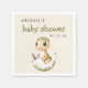 Estes bonitos guardanapos de chá de fraldas apresentam um dinossauro beige e verde a aquarela nascendo de seu ovo, abaixo das palavras "chá de fraldas" em letra verde impressa à mão. Personalize o texto com o nome da futura mãe e a data em cinzas de carvão serif.