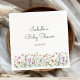 Estes elegantes, Chá de fraldas de flor selvagem Napkins, guardanapos neutros em relação ao gênero apresentam um lindo design de flor silvestre a cores aquáticas, perfeito para celebrar a chegada de um bebê ou menina. A estética simples e mínima garante que eles se ajustado perfeitamente em qualquer decoração, enquanto a delicada ilustração floral da flor selvagem adiciona um toque de charme. As opções de personalização permitem que você faça esses guardanapos exclusivamente seus, criando uma lembrança memorável para sua ocasião especial. Ideal por adicionar um toque atencioso e na moda à sua celebração do tema do chá de fraldas "A Little Wildflower"! Use os detalhes da seção "Personalizar este modelo" para adicionar suas informações. Design original do Ana Garza/Kardz Studio. Se tiver alguma pergunta, por favor contacte-me através do bate-papo Zazzle.