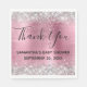 Crie seu obrigado de chá de fraldas, guardanapos de papel para a celebração especial dela. Garota cintilante, brilho bobo nos bordos superior e inferior, sobre uma folha metálica cor-de-rosa esfregada, estilo "ombre". As cores principais são rosas claro, cinzas, prata, preto e branco.