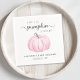 Guardanapos bonitos para seu chá de menina apresentando "A Sweet Little Pumpkin Is On Her Way" escrito em uma simples tipografia de cinza e um roteiro de na moda com pestanas, e uma aquarela rosa pastel de uma abóbora.