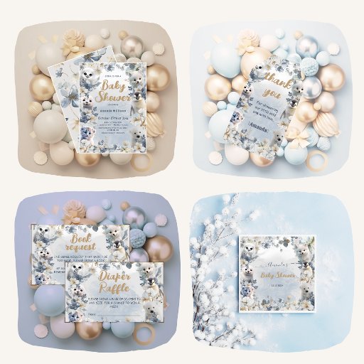 Apresentando a "Coleção de Chás de fraldas de Felpudos, Soft e Fluffy de Animais do Ártico" - um tema brilhante e animador desenhado para celebrar a chegada de um conjunto de preciosos de alegria. Esta coleção encantadora combina o charme suave das cinzas de luz macia e elementos florais pastéis azuis suaves com a presença adorável de favoritos de animais árcticos. Sua chá de fraldas se transformará em uma terra maravilhosa do inverno com a inclusão de tigres de neve, focas, ursos, raposas, corujas e pinguins, todos representados na forma mais doce e flufítica imaginável. Estas criaturas trazem um toque de magia árctica para a vossa celebração, criando uma atmosfera acolhedora e convidando os vossos hóspedes. A paleta de cor suave e os delicados motivos florais em cinzas leves e azul pastel evocam um senso de calma e tranquilidade, perfeito para um ambiente de chá de fraldas que expele serenidade e calor. Esta coleção é um testemunho dos momentos dolorosos partilhados com os seus entes queridos, como antecipa a chegada do seu mais novo membro da família.