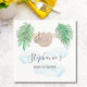 Sorrindo Chá de fraldas De Lama Napkin. Este guardanapo de papel chá de fraldas divertido apresenta uma doce preguiça bebê pendurada num galho, com as folhas verdes e as nuvens de turquesa. Adequado para um chá de fraldas neutro em termos de gênero. Todo o texto é personalizável. Há placas de papel na minha loja. Original Watercolor © Michele Davies.