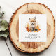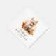 Fraldas de chá de fraldas, lindas, com tema florestal, com a ilustração aquosa de uma raposa bebê sentada sobre as folhas do outono em tons de laranja, vermelho e amarelo. Personalize os guardanapos de chá de fraldas de raposa com o nome da futura mãe e a data do chá de fraldas. Projetado para coordenar com a nossa coleção de Chás de fraldas de Animais da Floresta em Cuta.