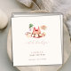 Celebra o chá de fraldas dos temas modernos e bonitos do chá de fraldas de aquarela, a ilustração da frente com ilustração aquática, vestido cor-de-rosa de flor da margarida, chapéu de palha, cesto de flores, sandália, brinquedo de coelho de coelho e caligrafia, texto "Oh bebê" sobre cor de fundo bege. A parte de trás é cor-de-rosa empoeirada. Perfeito para o verão, primavera, chá de fraldas. Personalize seu próprio texto.