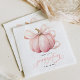Este elegante e charmoso guardanapo de papel chá de fraldas apresenta uma bela ilustração aquática de uma abóbora rosa com uma fita arco coquete, perfeita para celebrar a chegada de um pequeno na estação do outono.