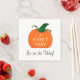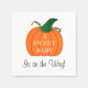 Um bebê doce está a caminho é escrito em tipografia branca através de uma abóbora de laranja pintada bonitinha com caule verde branco. Está a caminho está escrito na parte inferior em escrita negra. Design de Arte Original por TamiraZDesign.