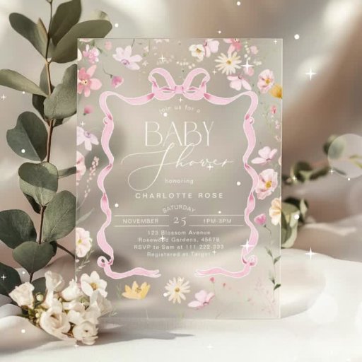 Pink Bow Ribbon Frame Floral baby showerCriado por Julia J