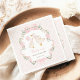 Projetado com um estilo aquoso suave e vintage, este adorável guardanapo apresenta um ganso de mamã e bebê, delicados sotaques florais e elegantes arcos cor-de-rosa pincelado envoltos em fita fluente. A delicada paleta pastel e o layout caprichoso oferecem um toque perfeito de elegância feminina coquete para sua celebração.
