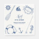 Ahoy! é um chá de fraldas de menino, tema chá de fraldas náutico, tema chá de fraldas de Fisher, comemorar o próximo chá de fraldas com nosso marinho azul-rústico veleiro náutico, âncora, roda, barco, anel de borracha de salva-vidas, caranguejo em cor bege, ao contrário do padrão de faixas azuis marinho. Você pode personalizar seu próprio texto e cor através de "personalizar este design".