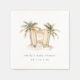 Traga o charme costeiro para sua capa de sopa de chá de fraldas com este guardanapo personalizado da Redwood & Vine Design Co. A design mostra palmeiras pintadas suavemente, margem arenosa e três pranchas de surfe, com detalhes de eventos em uma fonte serif moderna e limpa. Ideal para comemorações tropicais, surfs ou de praia, estes guardanapos coordenam-se perfeitamente com papelaria costeira e decoração para uma aparência coesa à beira-mar.