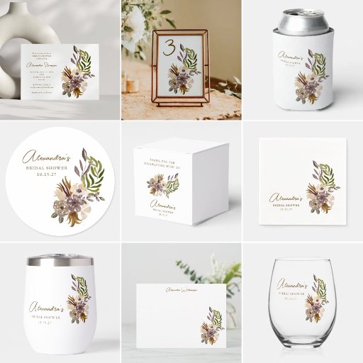 Guardanapos de Chá de Noiva Boho Rústico Poeira de Roxo Botânico Terroso Personalizado