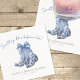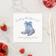 Este simples e elegante design de guardanapo para chá de noiva apresenta a frase “algo azul antes que eu case” no topo, em uma caligrafia de letra cursiva azul suave, adicionando um toque doce e divertido. No centro, um par de botas de cowboy em aquarela azul com um laço delicado traz um visual rústico e inspirado no campo.
