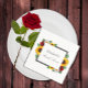 O design apresenta girassóis, rosas e margaridas elegantes com uma paleta de cores de outono em amarelo dourado, vermelho e branco. O design também apresenta uma moldura cinza carvão. Você pode alterar a cor do fundo da frente e do verso para a cor de sua escolha ou deixar ambos em branco.